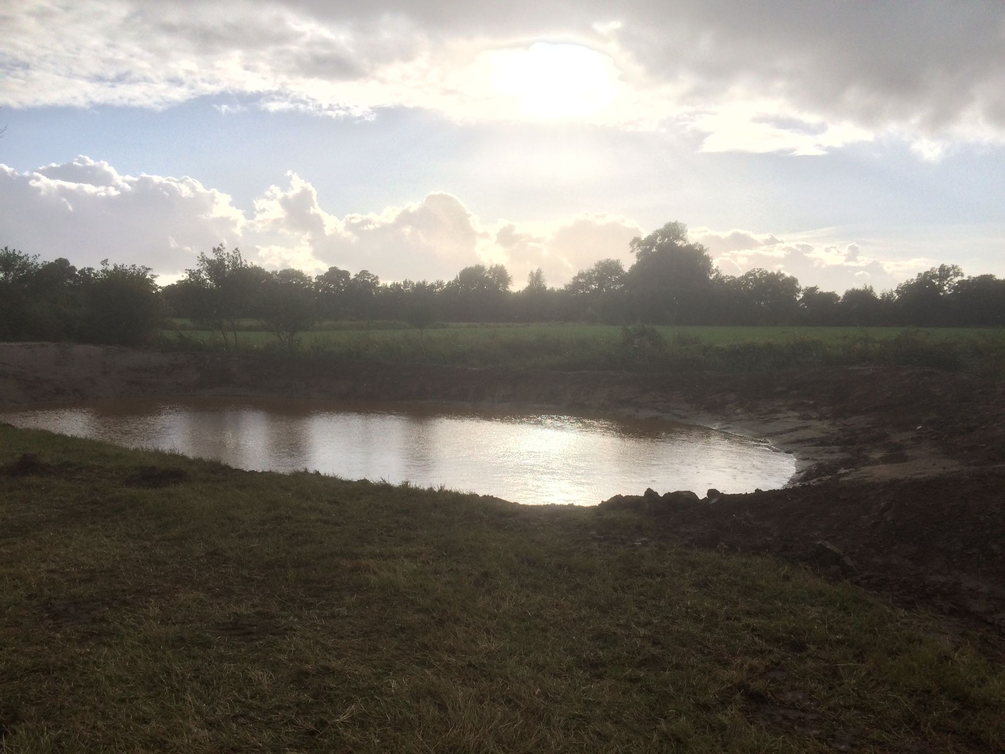 • In de noordwesthoek van het perceel is eind 2022 in samenspraak met de pachter een poel aangelegd. Deze plek is gekozen in overleg met vrijwilligers van het KNNV. Zij hebben door middel van een kruideninventarisatie kunnen opmaken dat op deze plek kwelwater naar boven komt.
