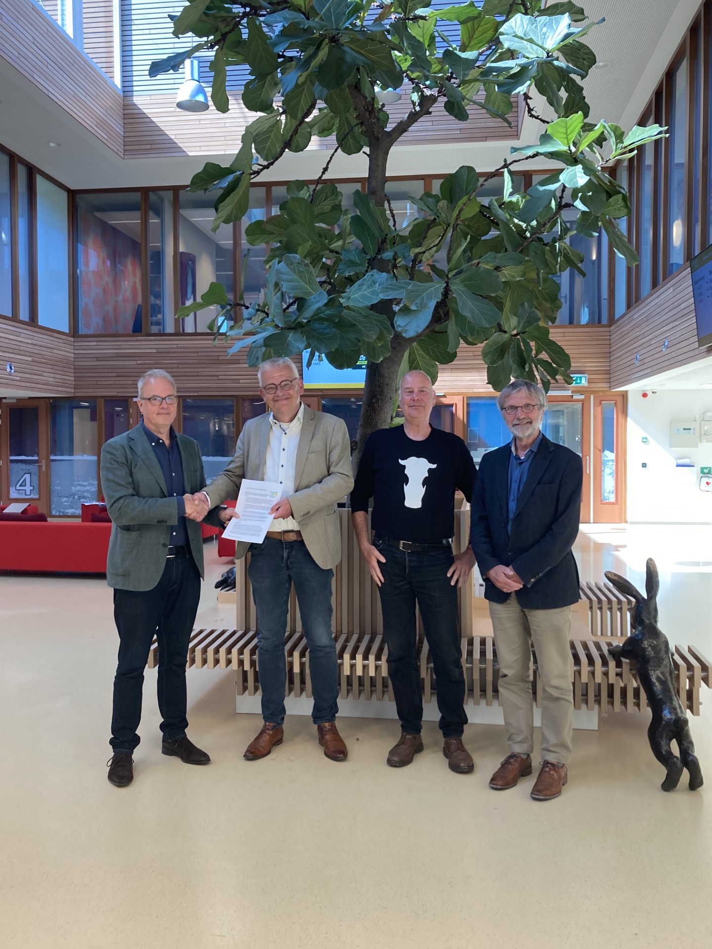 Philippe Terheggen (Land van Ons) overhandigt open brief en pachtnotitie aan wethouder Daan Binnendijk